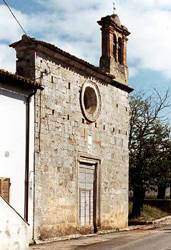 Del XV secolo è la facciata, rettangolare, in pietre di varie dimensioni, con elegante oculo e campanile a vela.