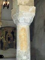 Interessanti anche gli affreschi delle pareti. Su quella di sinistra alcuni frammenti e un bel Crocifisso ligneo del XIII secolo; sulla prima colonna di destra una sinopia con Santo che tiene un papiro; sull'altare della navata destra Madonna con il Bambino tra Santa Barbara e Sant'Antonio Abate del XV secolo, opera di Niccolò di Vannuccio; sulla parete posteriore un affresco con raffigurati Sant'Antonio Abate, San Pietro, San Fortunato e Sant'Onofrio del XIV secolo; al centro dell'abside Madonna con il Bambino (sec. XIV-XV), al quale furono aggiunti posteriormente San Felice e San Benedetto. Sulla sinistra una Crocifissione con San Severo e San Francesco (sec. XVII).